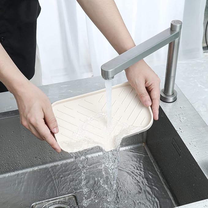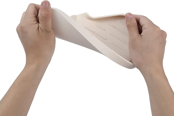 Silicone Bathroom Soap Dishes with Drain Spout-Bathroom and Kitchen Sink Organizer,Sponge Holder,Dish Soap Tray,Perfect for Dispenser,Scrubber,Bottle,Cup on Sink or Counter-Tapioca 9.6"×5.3"