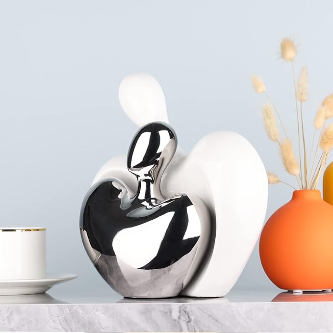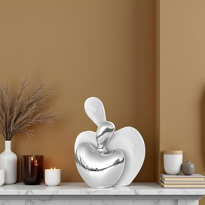 XMGZQ White and Silver Ceramic Couple Figurines Home Decor,Wedding Engagement Romantic Gift for Husband Wife,Large Male and Female Love Statue Valentine's Day Birthday,Abstract Hugging Couple