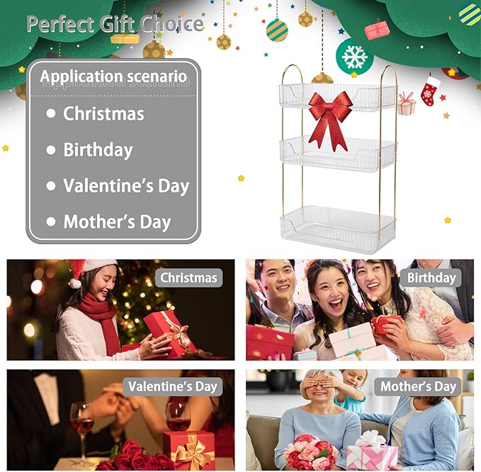 - Large Capacity: This organizer 2 tier measures 11.81''D x 6.7''W x 13''H, 3 tier measures 11.81''D x 6.7''W x 18.9''H (Please measure your countertop space before purchase). Perfect for organizing skin care products, cosmetics, perfume or anything you like, save space and increase storage capacity