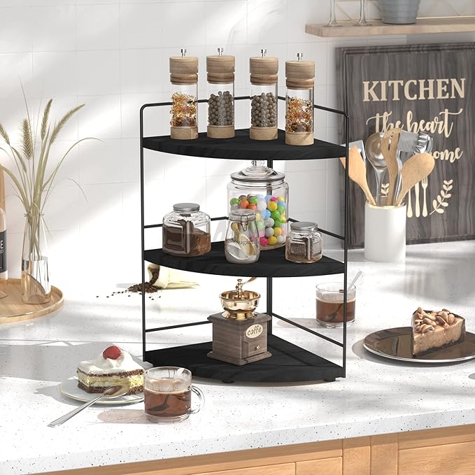 ZGO 3-Tier Bathroom Organizer Countertop, Corner Bathroom Counter Organizer, Makeup Organizer for Vanity Skincare Organizers and Storage, Bathroom Counter Storage(Black)