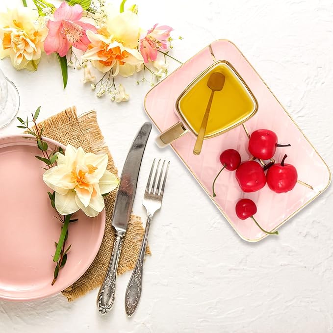 - Attractive and Elegant: the ceramic aesthetic coffee mug with saucer is characterized by handbag shapes and hand painted golden edges, and the color combination of pink and gold makes it more beautiful and graceful, which can bring both decorative and practical functions