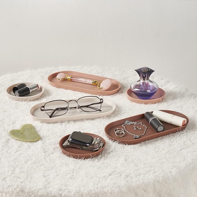 - Mini Silicone Trays - This set of 6 mini silicone trays are a game-changer for keeping your home organized and tidy. Perfect for kitchen, bathroom, vanity, and office use. They have a minimalist design and matte finish that is easy to clean and slip-resistant. These trays are a must-have for anyone who values organization and tidiness in their home.