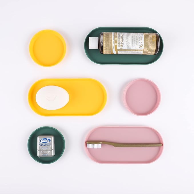 Blue Ginkgo Mini Silicone Trays – Set of 6 Easy-Clean Organizers for Bathroom, Kitchen, Desk, Vanity, and Cosmetics (Green, Yellow, Pink)