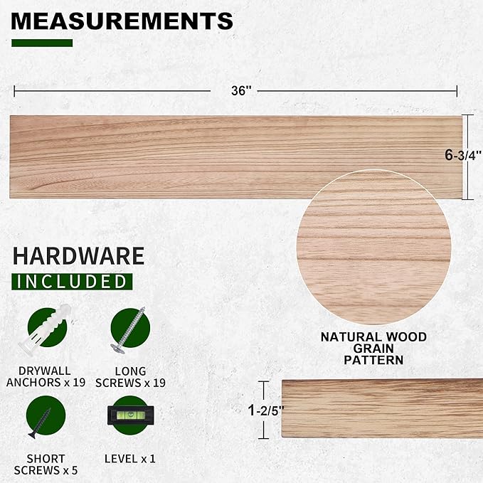 - Easy Installation: With the included hidden T-type mounting brackets and clear instructions, these floating shelves can be easily installed, providing a seamless, clutter-free look on your walls.