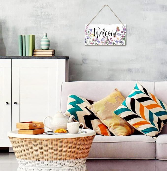 Welcome Decor Sign, Hanging Wood Sign Home Decorative, Printed Wood Wall Art Sign, Flower Welcome Sign, Yard Garden Welcome Sign, Porch Decor Sign, Farmhouse Front Door Decor Sign 12 * 6inch