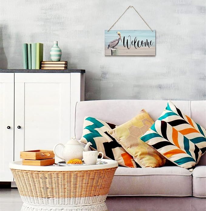 Rustic Hanging Welcome Wood Sign, 12 * 6inch - Farmhouse Porch Wall Art