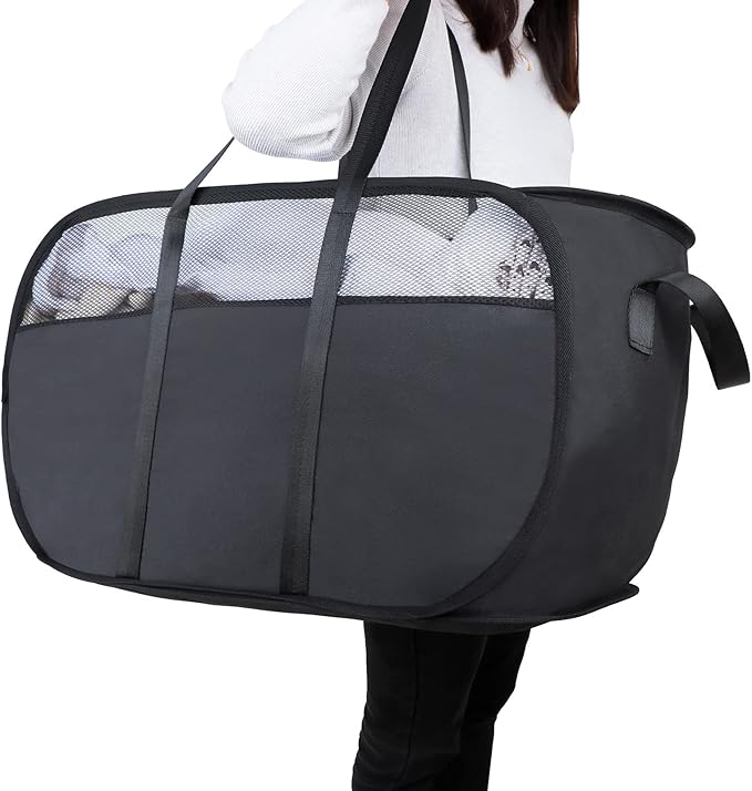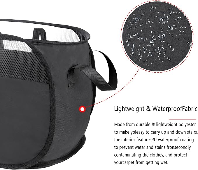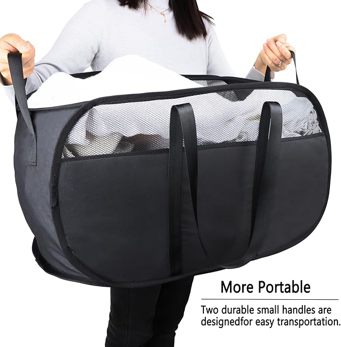 Pop Up Laundry Hamper,with Durable Handles collapsible laundry basket,Easy to Open and Fold for college Dorm,kids room,travel (Black)…