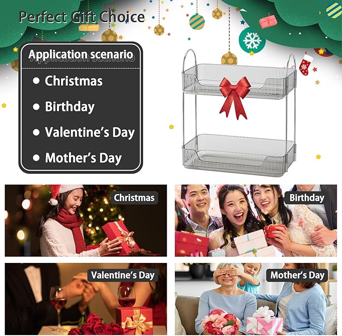 - Large Capacity: This organizer 2 tier measures 11.81''D x 6.7''W x 13''H, 3 tier measures 11.81''D x 6.7''W x 18.9''H (Please measure your countertop space before purchase). Perfect for organizing skin care products, cosmetics, perfume or anything you like, save space and increase storage capacity