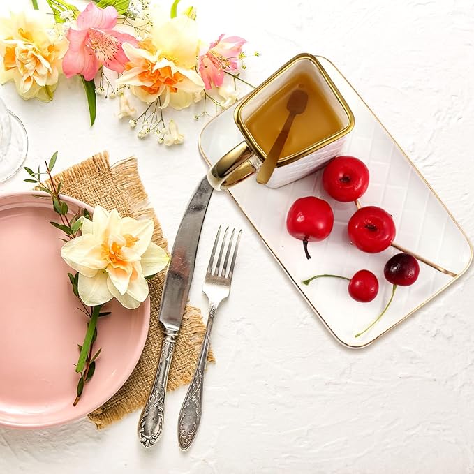 - Attractive and Elegant: the ceramic aesthetic coffee mug with saucer is characterized by handbag shapes and hand painted golden edges, and the color combination of white and gold makes it more beautiful and graceful, which can bring both decorative and practical functions