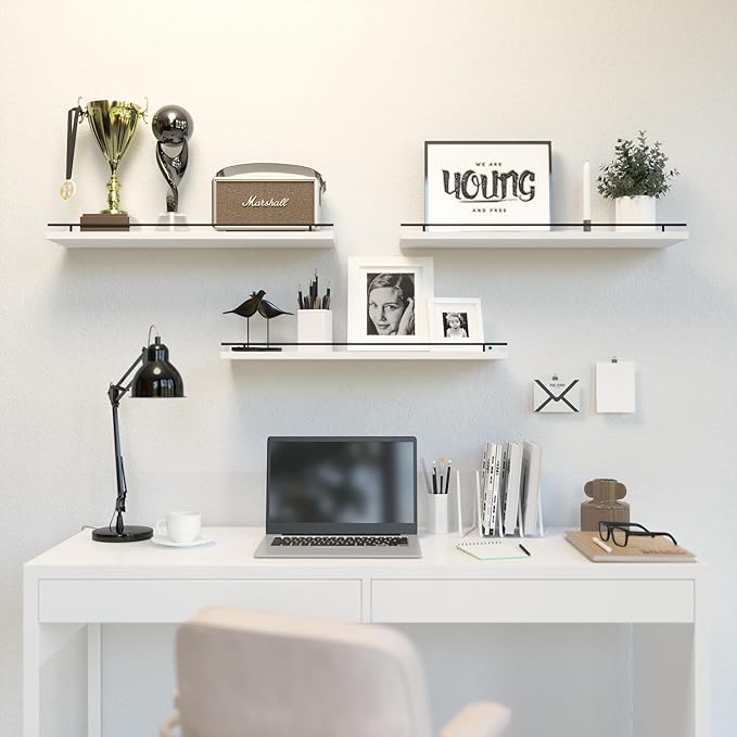 - 【Install Without Any Worries】 - Packing List: 1 clear installation guide, 3 shelf boards, 3 metal guardrails, some circular pads and hardware. Each shelf board has pre-drilled holes, it only takes a few minutes to follow the instructions and complete the mounting, then you can curate your own display for wall. Shelf dimension: 23.6 inch L x 6 inch W. If there's any problem concerning installation, please contact us via Amazon immediately, WOPITUES customer service team is always here for you.