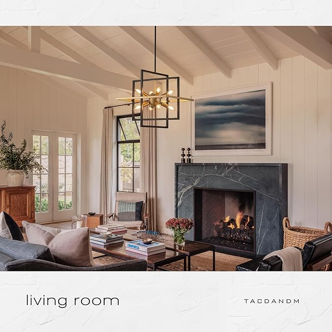 - 【Customized & Adjustable Height 】The total height of the Black and Gold Pendant Light is 38.98 in, of which the length of the two poles is 13.78 and 7.87 in respectively; the frame is 18.9 in long and 15.75 in wide. Compatible with flat, sloped, and vaulted ceilings, Modern Chandelier can easily customize the height according to your preferences.