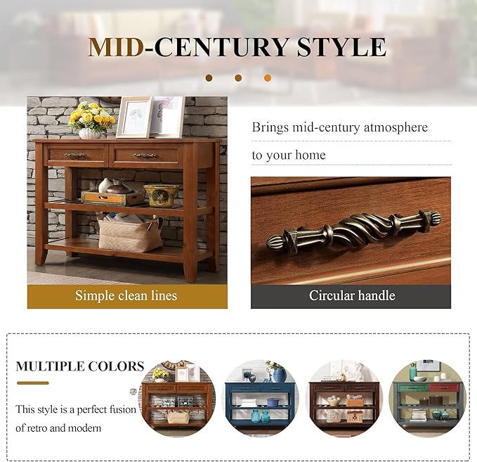 - 【Retro Sofa Table】The console table 42 "Lx 13.78"W x 30 "H.Solid Wood Sideboard Console Table features a retro design that adds a touch of vintage charm to your living room, foyer, or dining room. Its classic aesthetic enhances the overall ambiance of your space.
