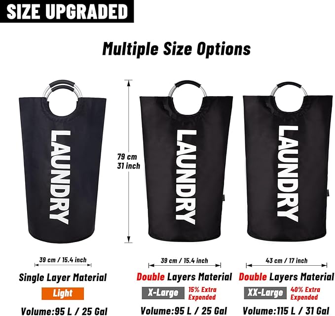- 【Aluminum Soft Rubber Handle Design】This laundry hamper is equipped with qualified aluminum handle with soft sponge on it, providing a comfortable carrying experience for you to bring your clean or dirty clothes to your bedroom, bathroom, laundry room or any places at your home.