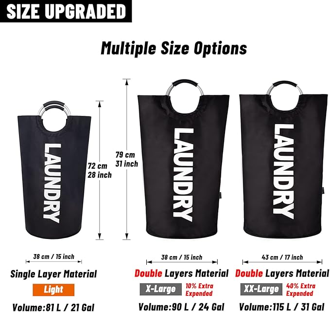 - 【Eyes on Durability】Thick fabric of cloth laundry basket prevent laundry bag with handles from tearing and toppling over. Premium seams and rivets of clothes hampers for laundry keep handles always in right place without ripping.