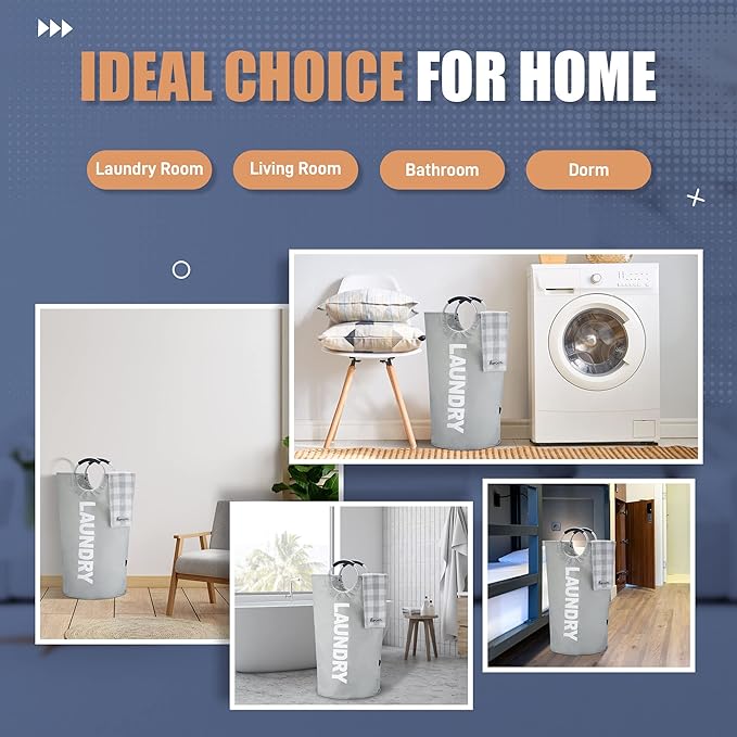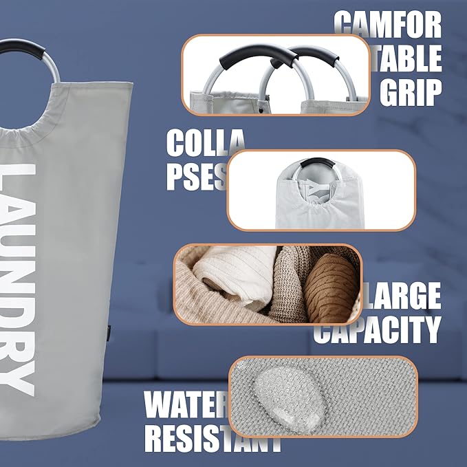 - 【Aluminum Soft Rubber Handle Design】This laundry hamper is equipped with qualified aluminum handle with soft sponge on it, providing a comfortable carrying experience for you to bring your clean or dirty clothes to your bedroom, bathroom, laundry room or any places at your home.