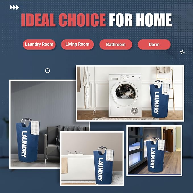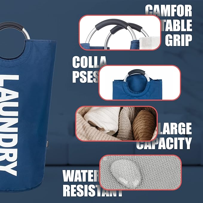 - 【Eyes on Durability】Thick fabric of cloth laundry basket prevent laundry bag with handles from tearing and toppling over. Premium seams and rivets of clothes hampers for laundry keep handles always in right place without ripping.