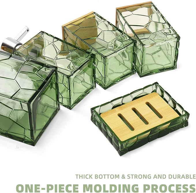 - High-Quality Acrylic Material: This olive green bath accessories set for the bathroom is crafted from premium A-grade acrylic material, ensuring exceptional quality. With a light transmission rate of over 98%, our bath accessories set has a stunning glass-like appearance, resembling the beauty of crystal. It eliminates any sense of cheap plastic, adding an elegant touch to your bathroom decor.