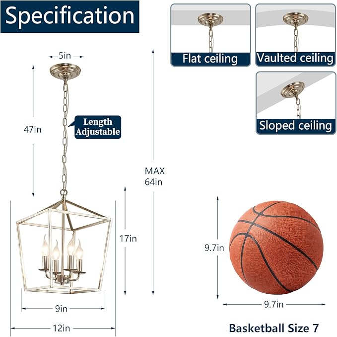 - Easy to Install:The frame of this brushed nickel lantern chandelier needs to be assembled. It is made of Sturdy and safe copper wire. The installation is very simple and takes only a few minutes to light up your room