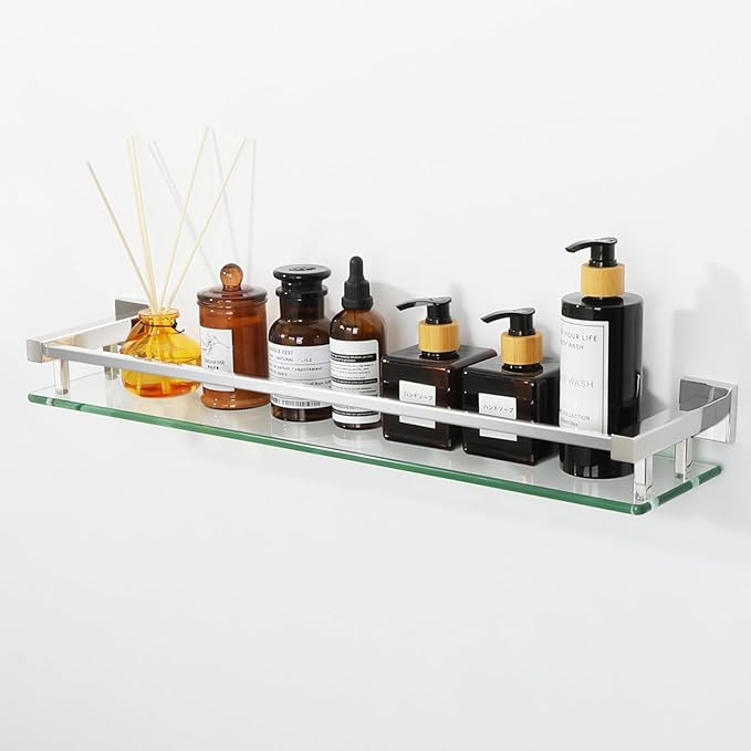 - TEMPERED GLASS:Our glass shelves are made with ultra-strong 8mm tempered glass and SUS304 stainless steel, ensuring a weight capacity that far exceeds standard shelves for reliable support