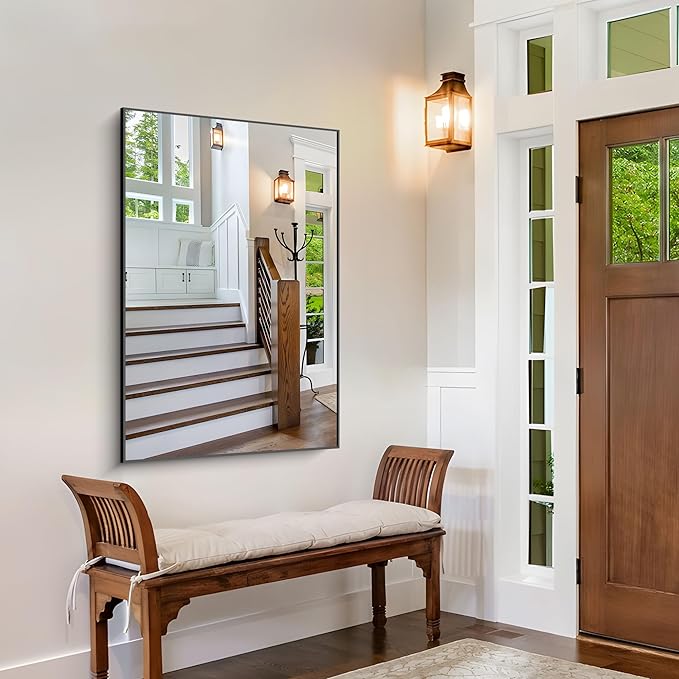 - SAFE USE: Black bathroom Mirror safety backing strengthens the glass surface, making it less prone to breakage and falling off, you can use it with confidence, the mirror design is simple, and the universal size can adorn your room well.