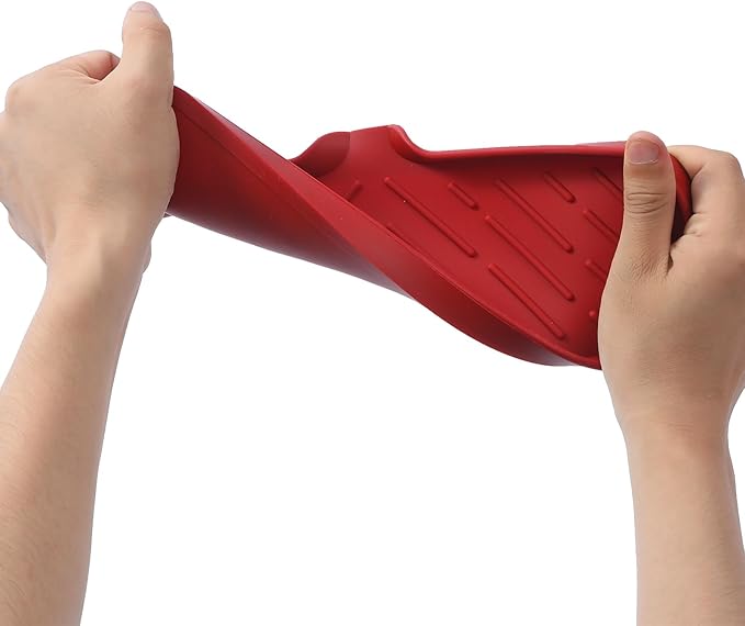 Silicone Bathroom Soap Dishes with Drain Spout-Bathroom and Kitchen Sink Organizer,Sponge Holder,Dish Soap Tray,Perfect for Dispenser,Scrubber,Bottle,Cup on Sink or Counter-Red 12"×4"