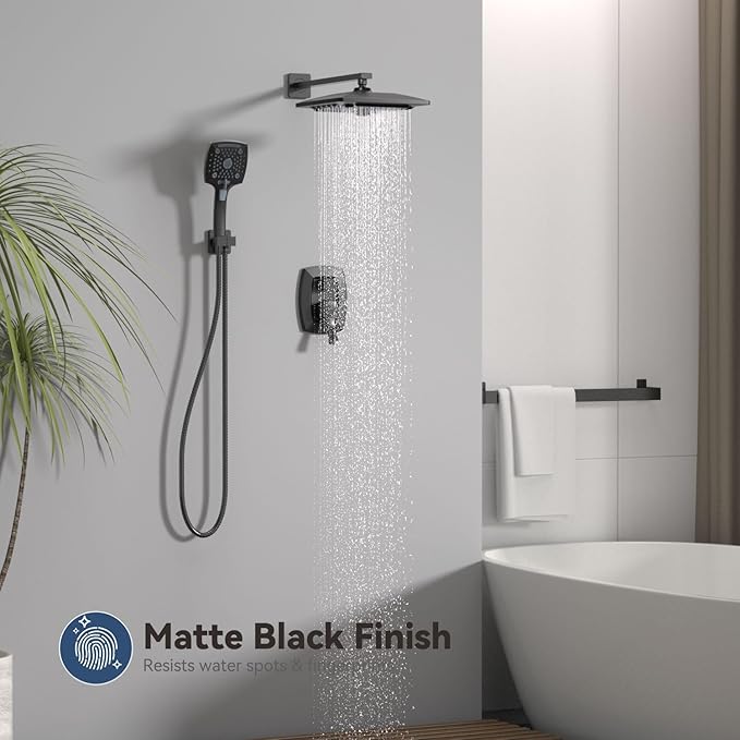 - 【Premium Quality Materials】 Premium ABS showerheads with multi-layer processed matte black finish for a concise and smooth appearance, rub-clean nozzles, dirt-resistant surfaces make the shower faucet set with valve durable and easy to maintain, no sharp edges, safer to use