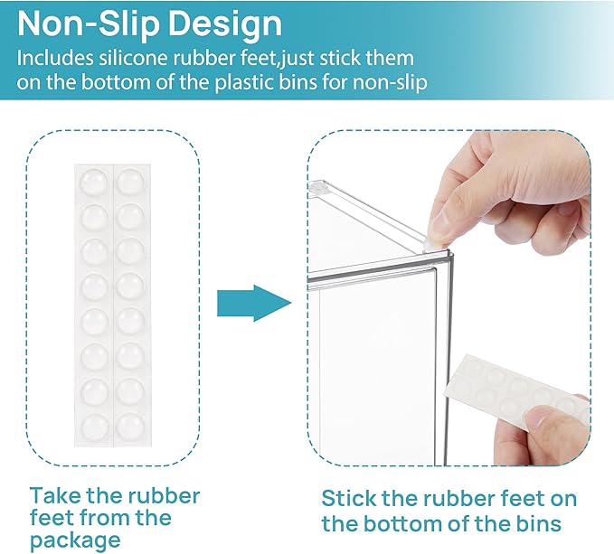 - [Built-in Handle and Non-Slip] Clear organizing containers are designed with pull-out handles, it is convenient to store and take out items.Extra silicone pads are included, add the rubber sticker dots to the bottom,our storage drawers slides in and out very effortlessly and outer frame don't move when pulled out the drawers.
