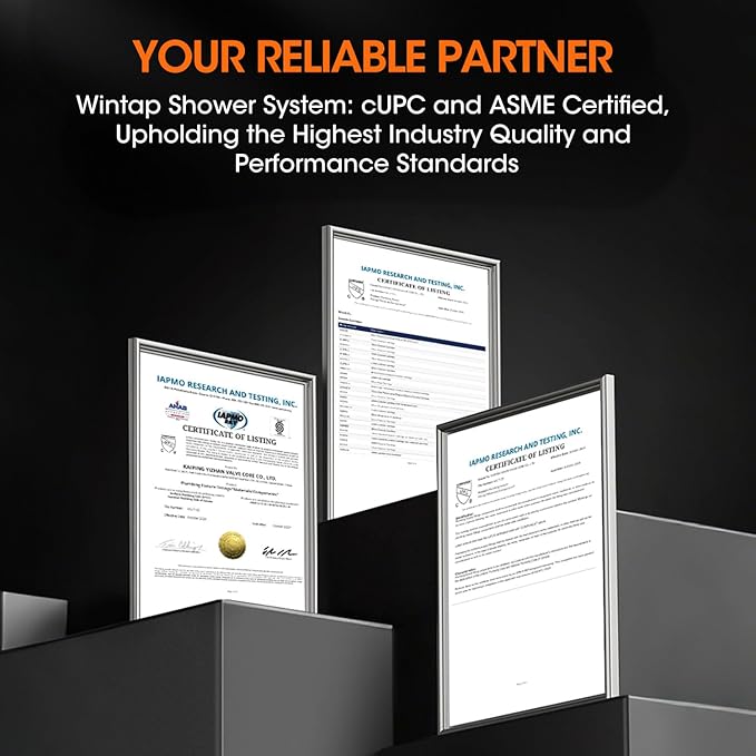 - 【US Plumbing Standard】Wintap shower head with handheld combo meets ASME A112.18.1-2018/CSA B125.1-18 standards for U.S. plumbing. NOTES: PARTS AND ACCESSORIES ARE FOR WINTAP ONLY.