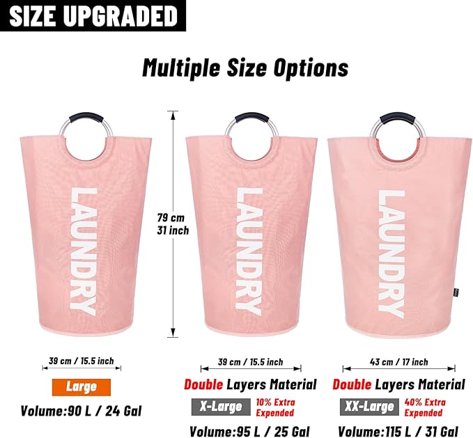 - 【Aluminum Soft Rubber Handle Design】This laundry hamper is equipped with qualified aluminum handle with soft sponge on it, providing a comfortable carrying experience for you to bring your clean or dirty clothes to your bedroom, bathroom, laundry room or any places at your home.