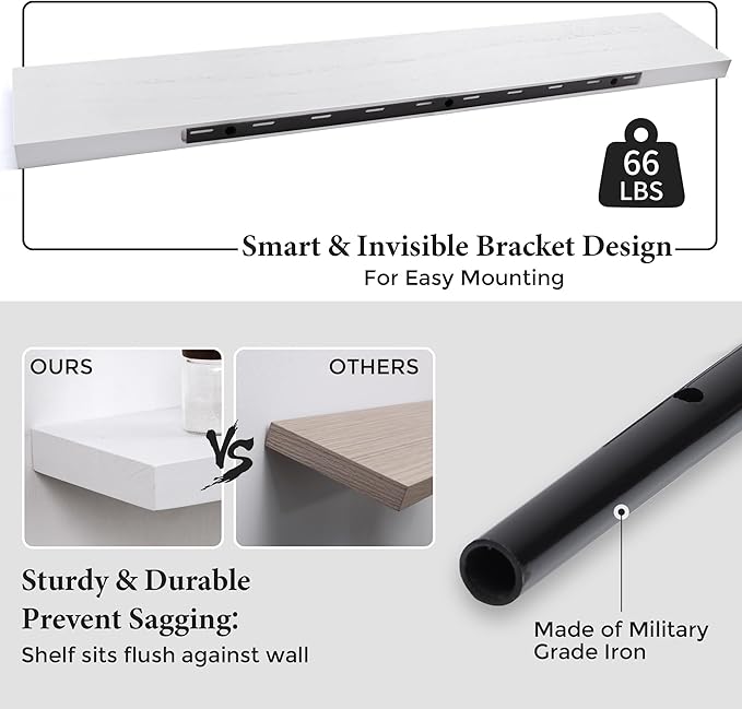 - Sturdy Support: Our high quality Solid Paulownia Wood construction ensures each shelf can hold up to 66 lbs, ensuring your items never sag or fall. Plus, the concealed mounting hardware gives the appearance of floating shelves.