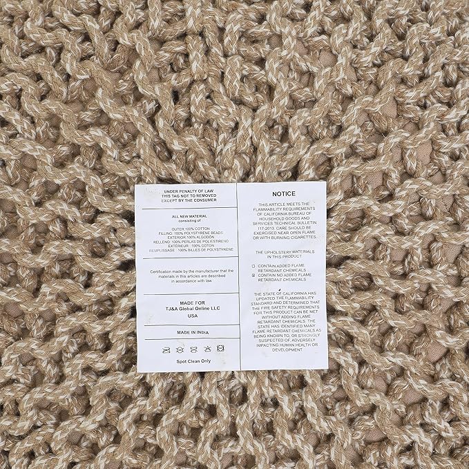 - HANDMADE FROM THE FINEST MATERIALS: The outer material on this farmhouse indoor pouf ottoman is made from 100% cotton and filled with high-density EPS beads. Each floor pouf measures 18”x18”x14” inches and is handmade by our talented artisans. Please allow a size variation of 1-2 cm as each piece is unique. As this is a round shaped accent pouf, place the tape at the widest part (center of ottoman) on both sides while measuring to get the right dimension