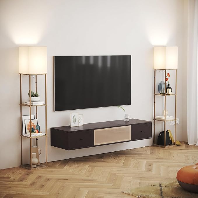 - Non-glaring Cloth Lampshade: The fshelf floor lamp has off-white fabric shade diffuses glare-free light, which is gentle on the eyes. And the memory function of this living room lamp saves the last used color temp, which is perfect for mood lighting!