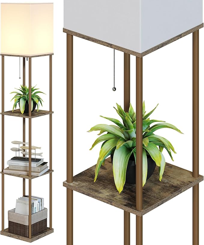 SUNMORY Floor Lamp with Shelves, Modern Square Shelf Lamps, Display Shelf Standing Lamp with 3 Color Temperature Bulb, Corner Bookshelf Lamps for Living Room and Bedroom Office, Home Decor