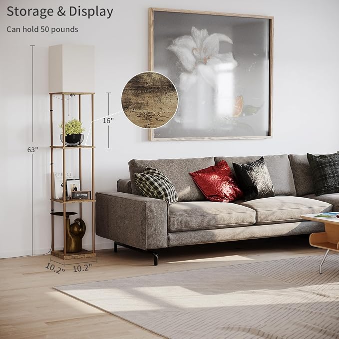 - Storage and Display: This tall lamp is made of high-density fiberboard that can support over 50 pounds, providing ample storage space and stability. Store books, decor, plants. Doubles as a corner lamp or nightstand with lamp. Ideal gift for holidays!