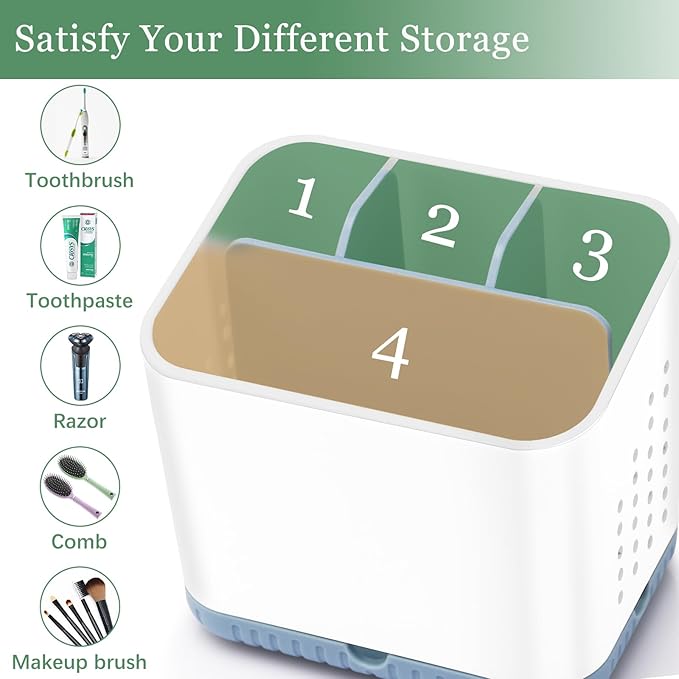 - DETACHABLE DESIGN: The toothbrush holders for bathrooms has a removable and compartmentalized design, with a total of 4 slots, it has enough capacity to store different kinds of bathroom storage, which greatly saves the storage space on the bathroom countertop. The removable design of the electric toothbrush holder is also easy for you to clean.