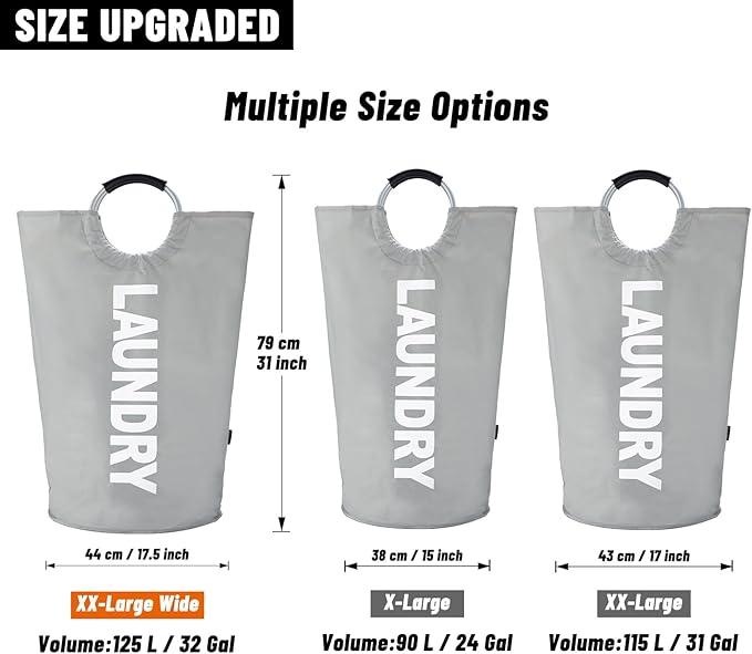 - [Upgraded Size and Capacity] This clothes basket has been scientifically reduced in size and capacity to improve its portability. The upgraded size is 17.3inx17.3inx31.5in (44cmx44cmx80cm) with the capacity of 125L.