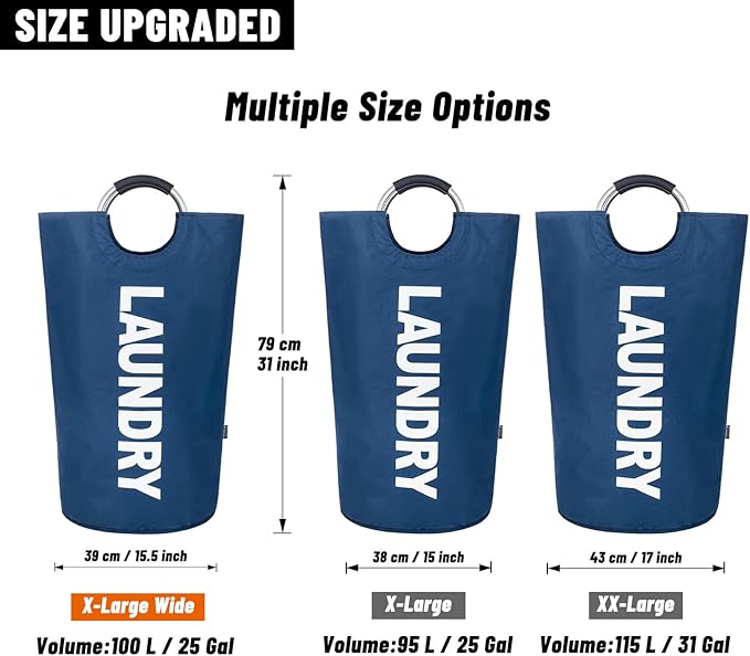Caroeas 100L Laundry Basket,Large Laundry Hamper, Laundry Bag with Padded Handles, Clothes Hamper Stands Up Well, Collapsible Free Standing Easy Storage Washing Bin (Navy Blue,100L)