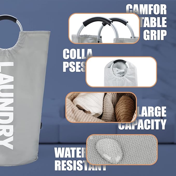 - [Aluminum Soft Rubber Handle Design] This laundry hamper is equipped with qualified aluminum handle with soft sponge on it, providing a comfortable carrying experience for you to bring your clean or dirty clothes to your bedroom, bathroom, laundry room or any places at your home.