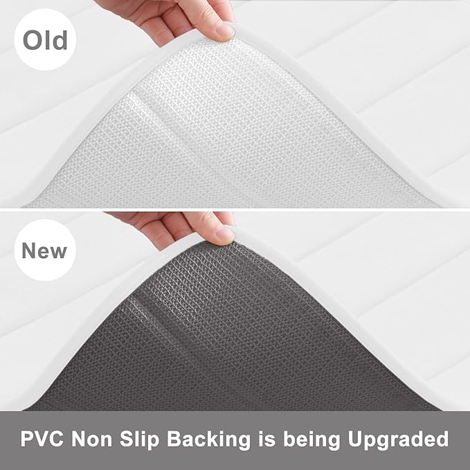 - NON-SLIP PVC BACKING: Bathroom mats feature a non-slip mesh back to prevent the mat from shifting and skidding, and the rubber back prevents water from seeping to the soft surface. WARNING: Place mat on CLEAN DRY SMOOTH FLOOR only. Water under bath mats can cause it to slip. Keep bottom of mat dry. Before using bath carpet, test with foot to ensure it doesn't move