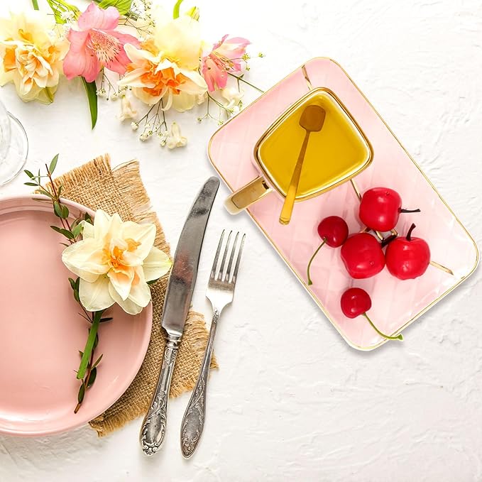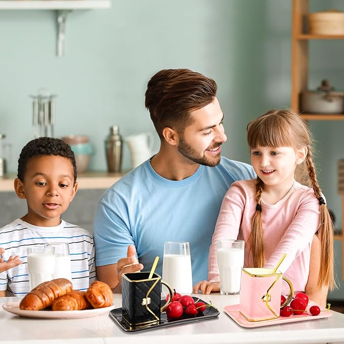 - Attractive and Elegant: the ceramic aesthetic coffee mug with saucer is characterized by handbag shapes and hand painted golden edges, and the color combination of pink, black and gold makes it more beautiful and graceful, which can bring both decorative and practical functions