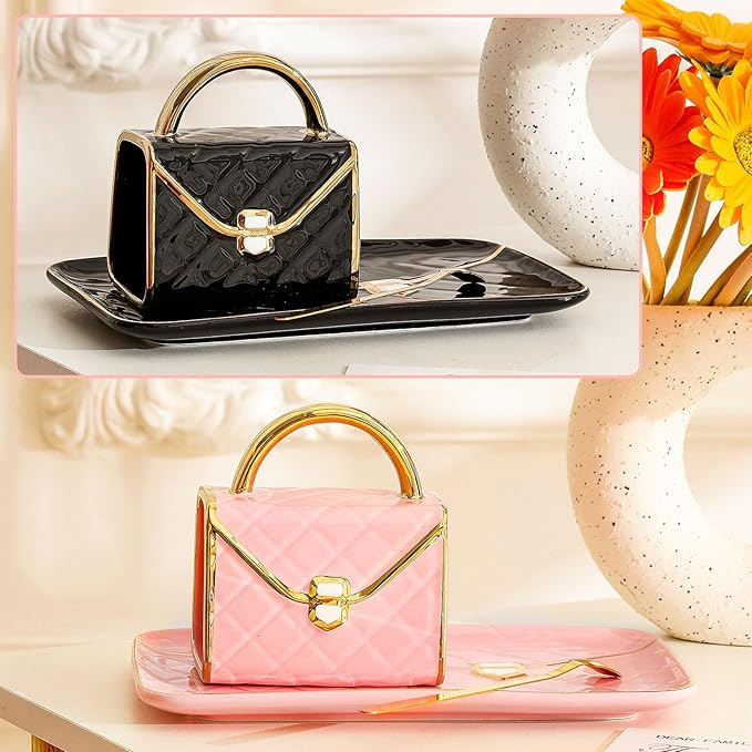 - Sweet Gift: the handbag shaped mug and saucer and spoon in a box are funny and thoughtful gifts for your friends, classmates, roommates, girlfriend, sisters, mother, wife and other people on birthdays, weddings, anniversaries, holidays and other occasions, which easily get favored by most women and girls