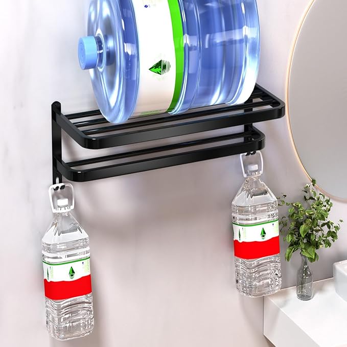 - 【Large Storage】15 inch long bathroom towel shelf with two towel bars and hooks. Stores all your towels, clothes, loofahs/scrubs, bathrobe, and so on. Save more space and making bathroom look cool.