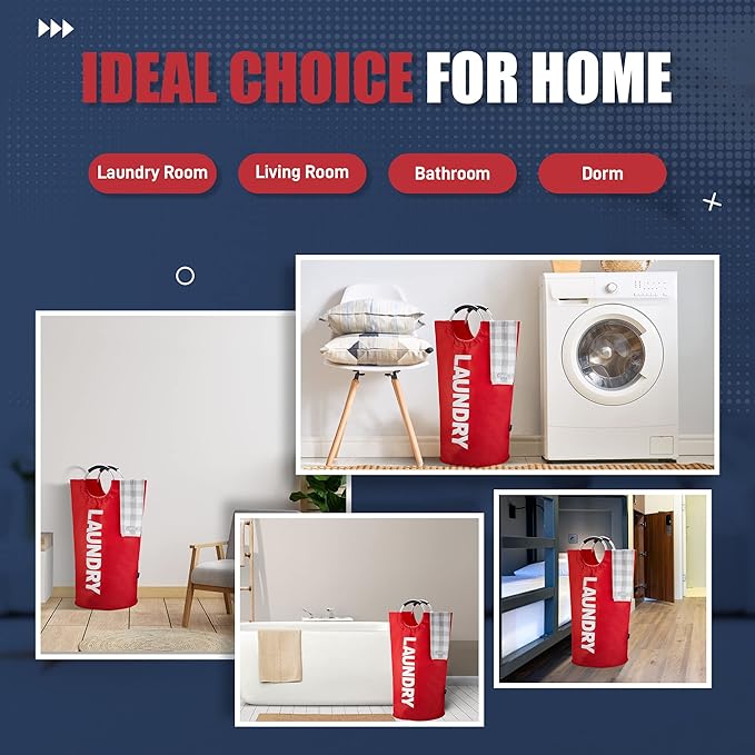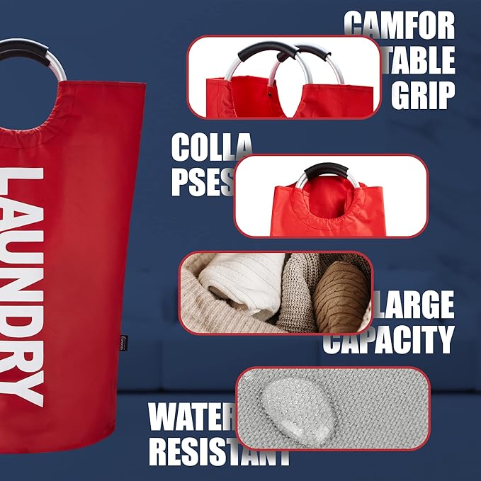 - [Aluminum Soft Rubber Handle Design] This laundry hamper is equipped with qualified aluminum handle with soft sponge on it, providing a comfortable carrying experience for you to bring your clean or dirty clothes to your bedroom, bathroom, laundry room or any places at your home.
