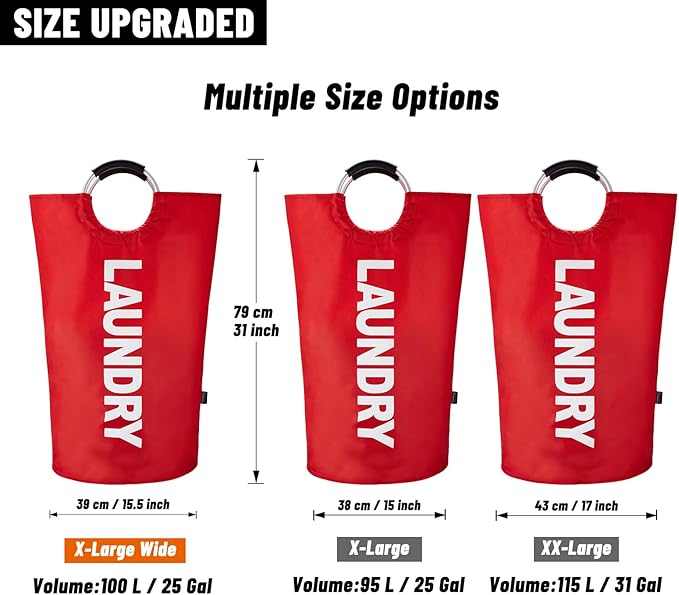 Caroeas 100L Laundry Basket,Large Laundry Hamper, Laundry Bag with Padded Handles, Clothes Hamper Stands Up Well, Collapsible Free Standing Easy Storage Washing Bin (Red,100L)
