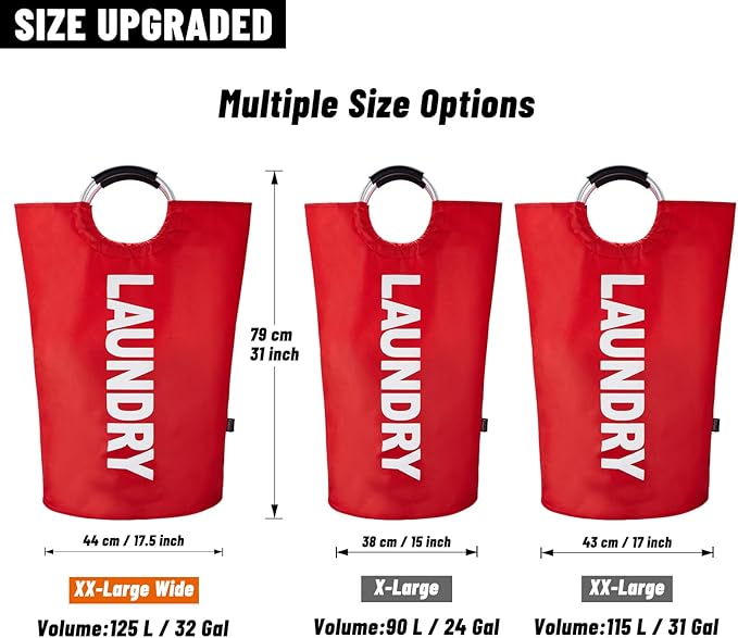Caroeas 125L Laundry Basket,Large Laundry Hamper, Laundry Bag with Padded Handles, Clothes Hamper Stands Up Well, Collapsible Free Standing Easy Storage Washing Bin (Red,125L)