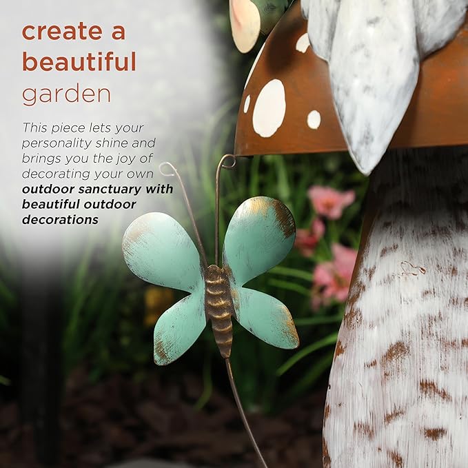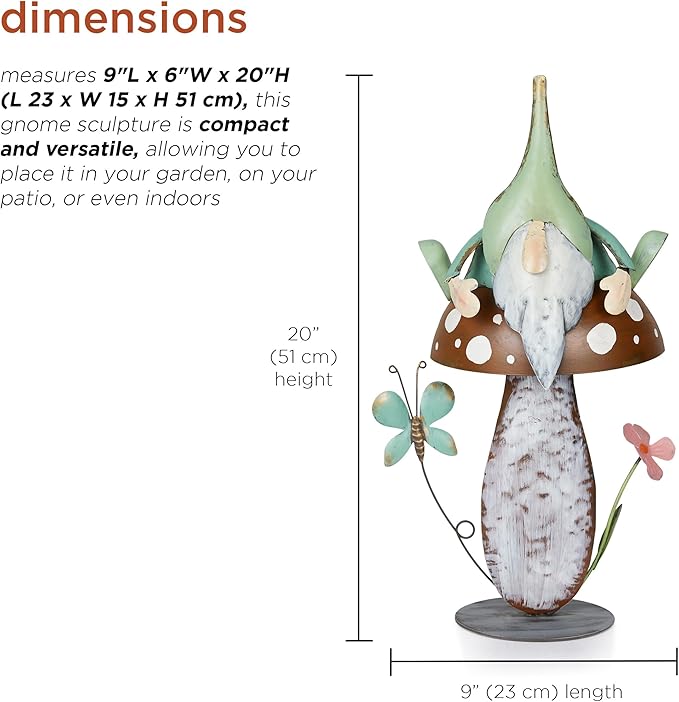 - CHARMING GNOME STATUE: Add charm to your garden, patio, or yard with the Alpine Corporation Metal Gnome with Mushroom. This colorful gnome brings a whimsical, fun vibe to your outdoor space, creating a joyful and playful atmosphere for all to enjoy