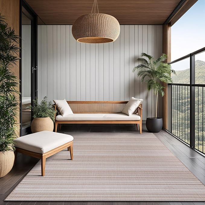 Stripe Outdoor Rug 5x7 Washable Outside Carpet for Indoor Patio Porch Waterproof Easy Cleaning Non Shedding Area Rugs Beige 5 x 7