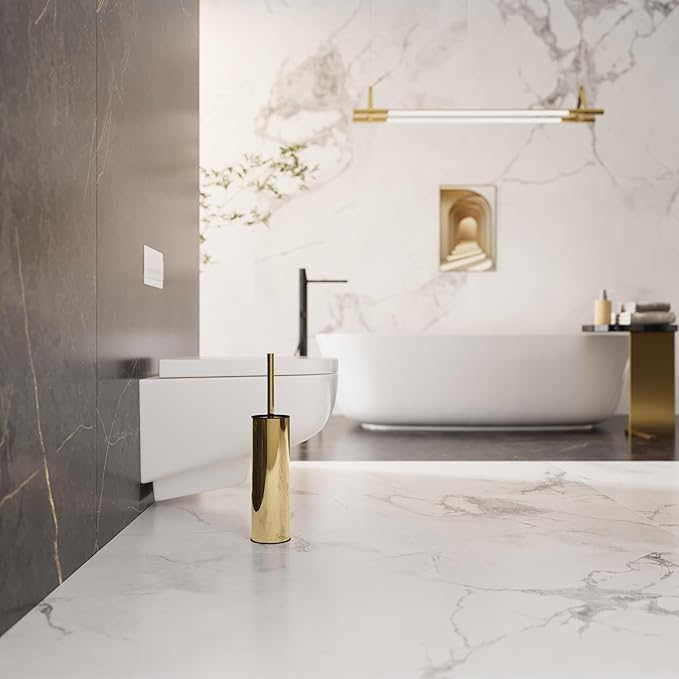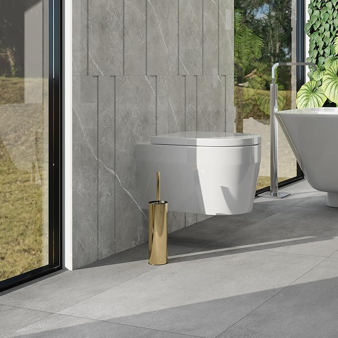 - Splash-proof design:BGL gold toilet brush set has a cover at the handle to prevent the sewage from splashing on the hand when cleaning the toilet. The cover baffle design protects your hands from stains and block the spread of odors, prevents scratching the toilet when cleaning.