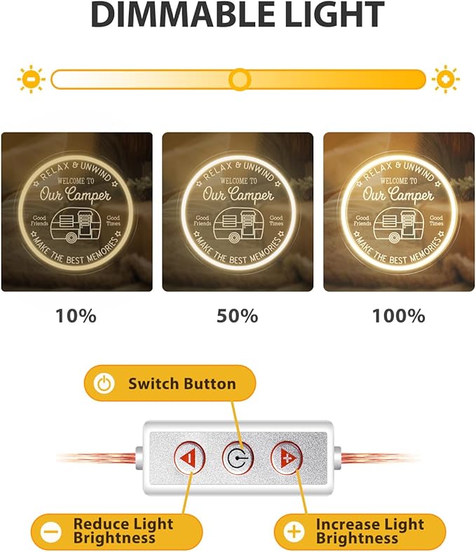 - ✨【10-Level Dimmable】Customize your led signs experience with our 10-level dimmable feature! Adjust the brightness of your neon sign to match your mood or ambiance. Whether you want a subtle glow or a bright, vibrant display, you can easily adjust it to your preference with our easy-to-use dimming controls.