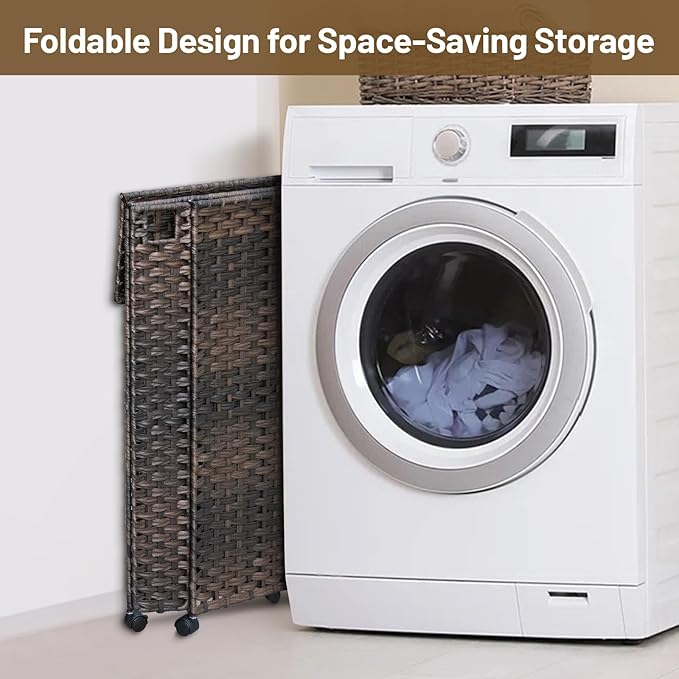 - Stable Steel Frame & Breathable Synthetic Rattan: Crafted with a sturdy steel frame and select synthetic rattan, this laundry basket with wheels is stable, waterproof, breathable, and can stay dry in humid environments. Since it is handmade, each piece is unique and there are slight differences